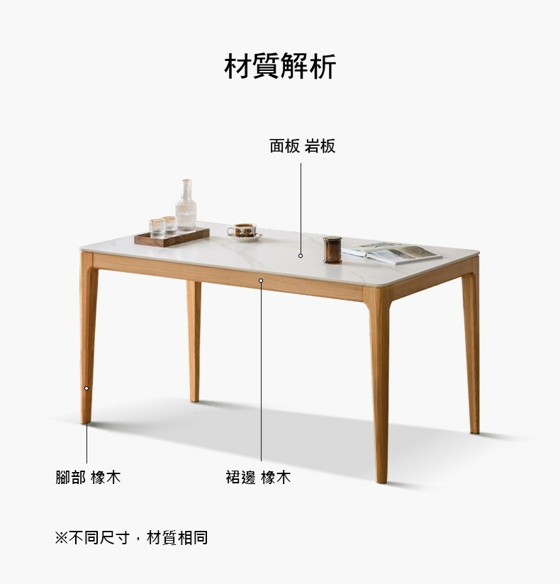 *注意:以下為情境示意圖,實際商品款式為雲岩橡木原木色岩板餐桌1.5M Y54R05