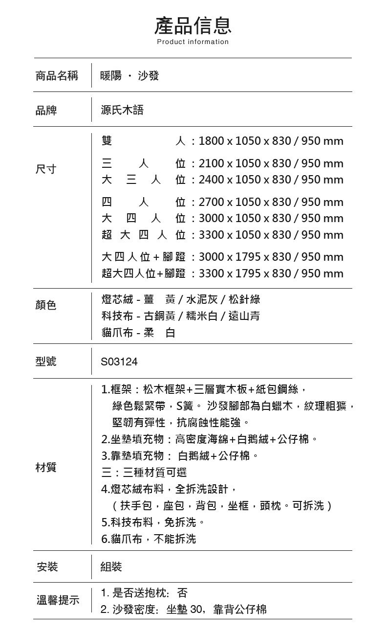 源氏木語暖陽可調頭枕貓抓布四人座沙發 S03124 柔白