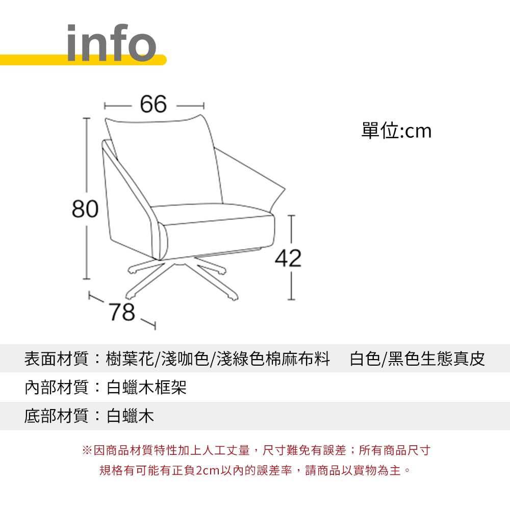 樹葉花、淺咖色、淺綠色為棉麻布料