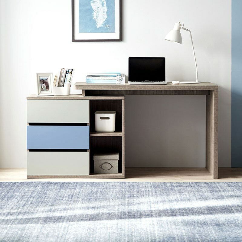 林氏木業現代簡約百搭跳色經濟型組合轉角書桌DJ1V-灰木色