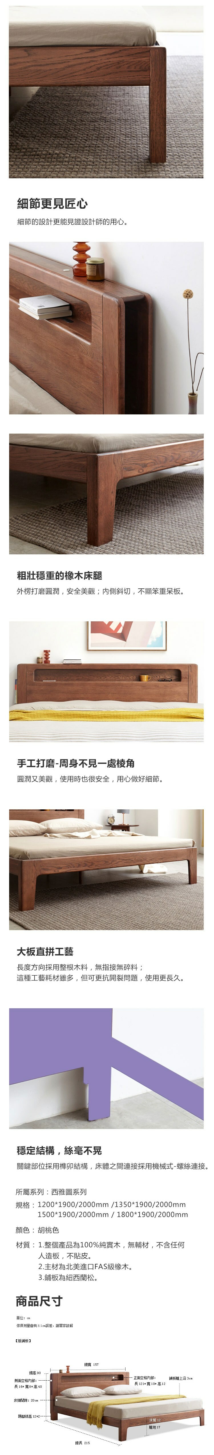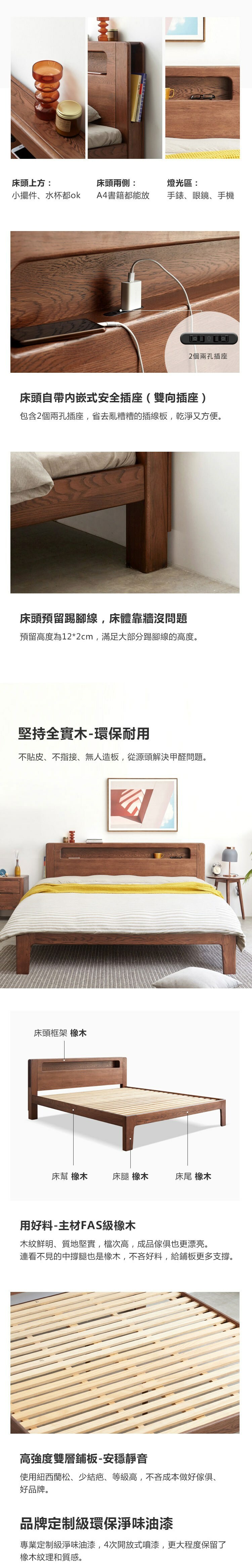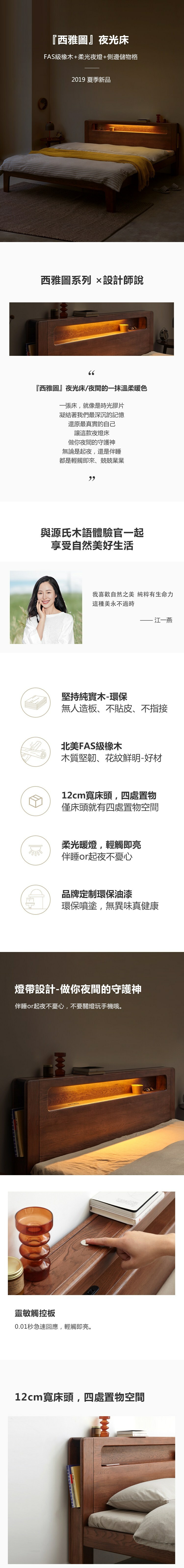 源氏木語西雅圖橡木多功能夜燈胡桃色雙人5尺150x190低床架 H90B13