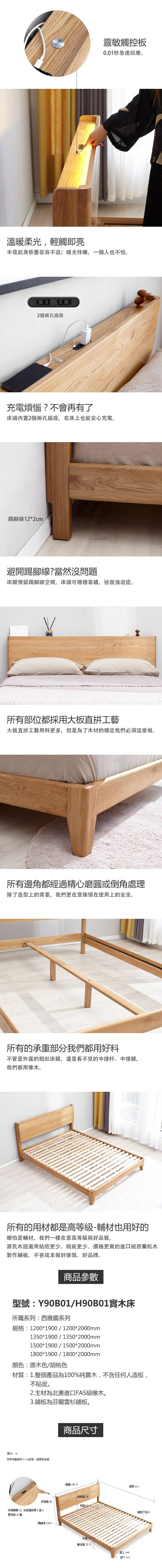 源氏木語西雅圖橡木收納夜燈原木色雙人加大6尺180x200床架 Y90B01
