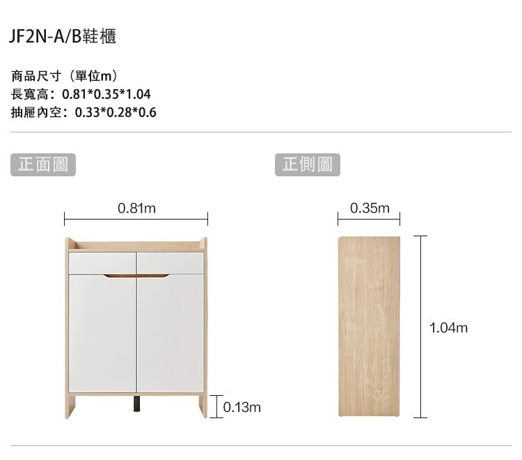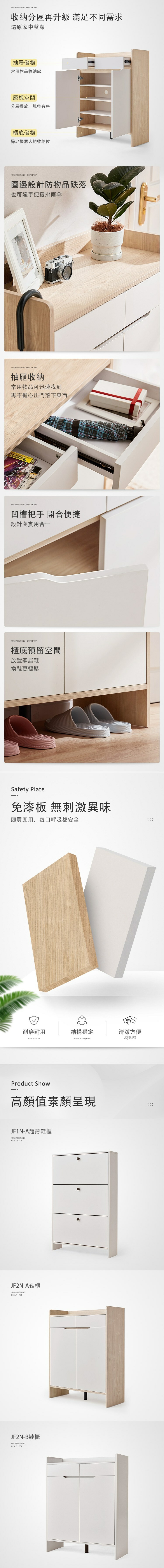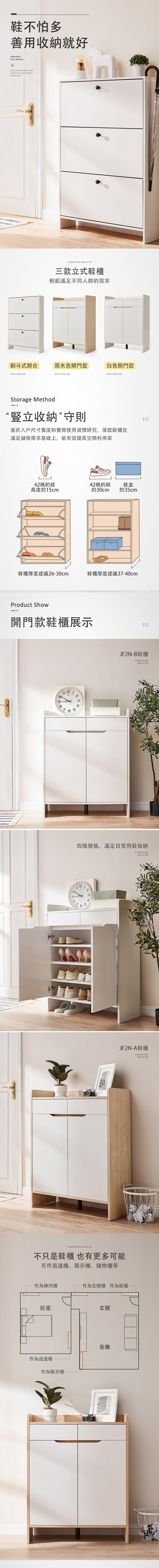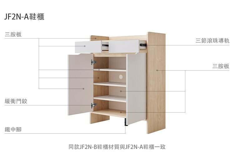 *注意:以下為情境示意圖,實際商品款式為雙門對開雙抽鞋櫃 JF2N-A 原木色+荷花白 (原木色開門款)