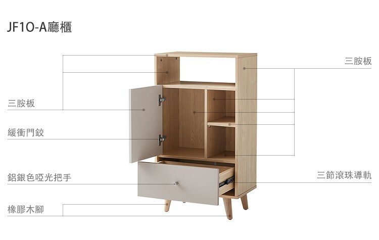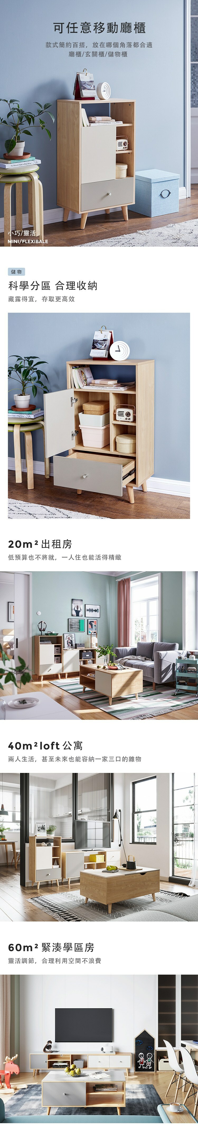 *注意:以下為情境示意圖,實際商品款式為林氏木業北歐簡約實木腳小戶型單門單抽廳櫃 JF1O-A原木色+灰色+荷花白