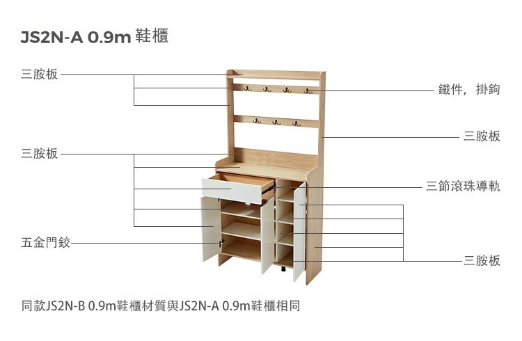 *注意:以下為情境示意圖,實際商品款式為附掛勾雙門對開0.9M鞋櫃 JS2N-B 白色