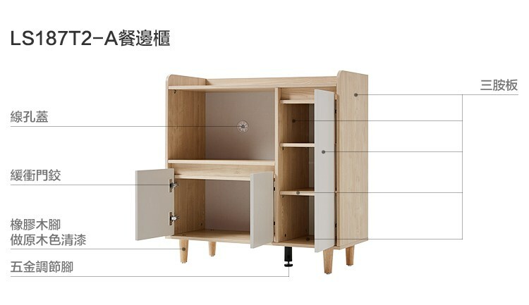 *注意:以下為情境示意圖,實際商品款式為北歐風百搭0.9M餐邊櫃 LS187-原木色+白色