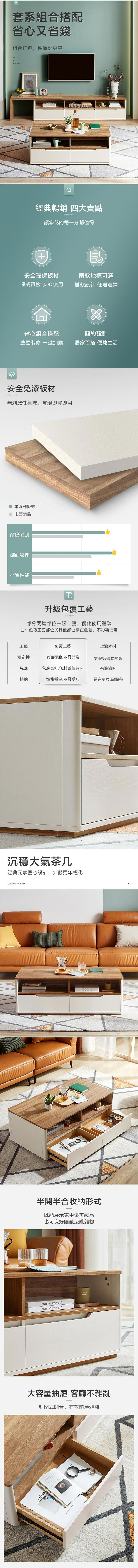 *注意:以下為情境示意圖,實際商品款式為林氏木業現代簡約小戶型抽屜儲物1.15M茶几 CP1L-原木色 (無玻璃)