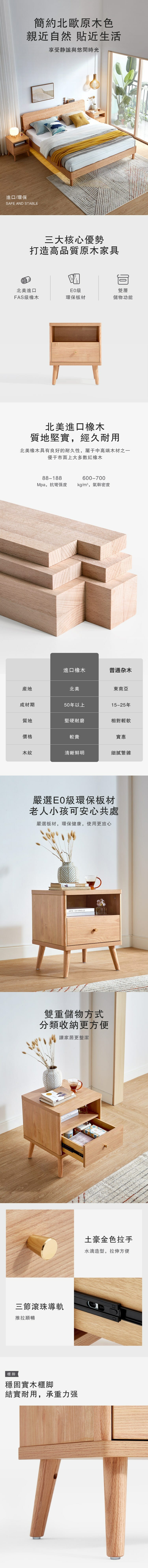 林氏木業北歐儲物單抽床頭櫃 JU1B