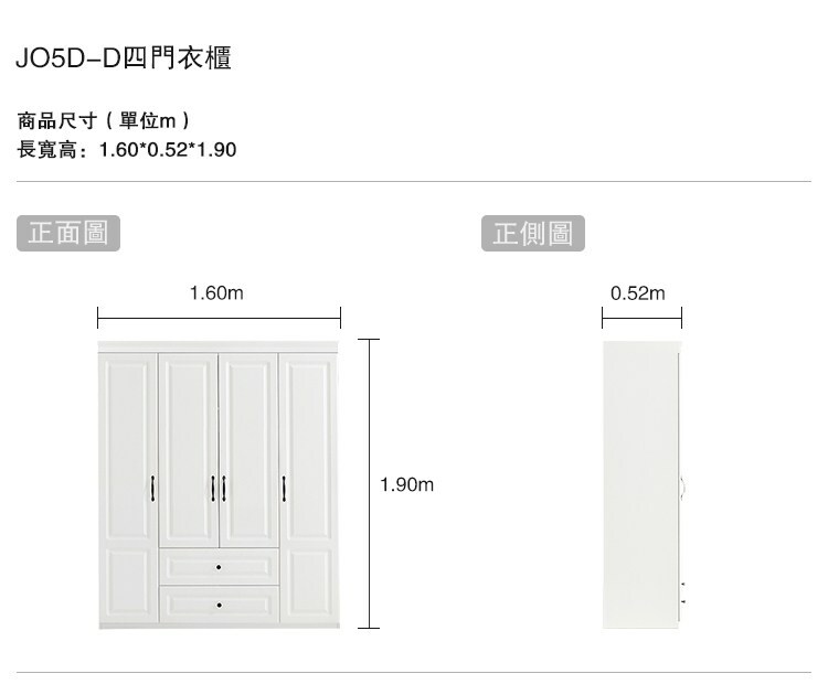 *注意:以下為情境示意圖,實際商品款式為林氏木業北歐簡約純白四門衣櫃 JO5D