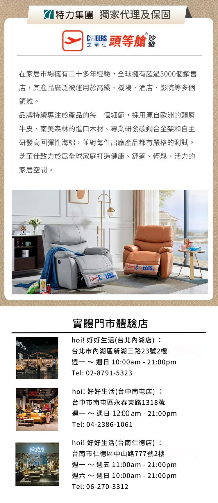 電動馬達保固6年,坐墊海綿保固5年,合金鋼架保固5年,沙發框架保固10年