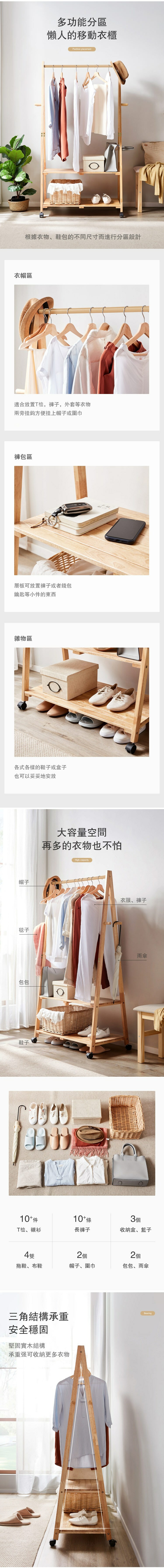 *注意:以下為情境示意圖,實際商品款式為林氏木業北歐經典實木雙層滾輪衣帽架 LS176-原木色