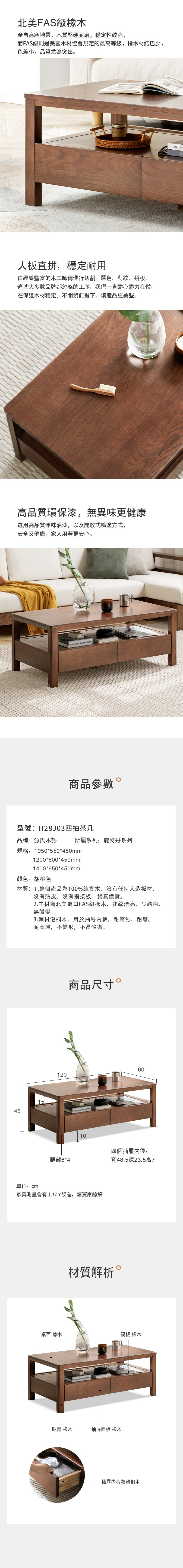 *注意:以下為情境示意圖,實際商品款式為鹿特丹胡桃色橡木1.4M四抽茶几 H28J03