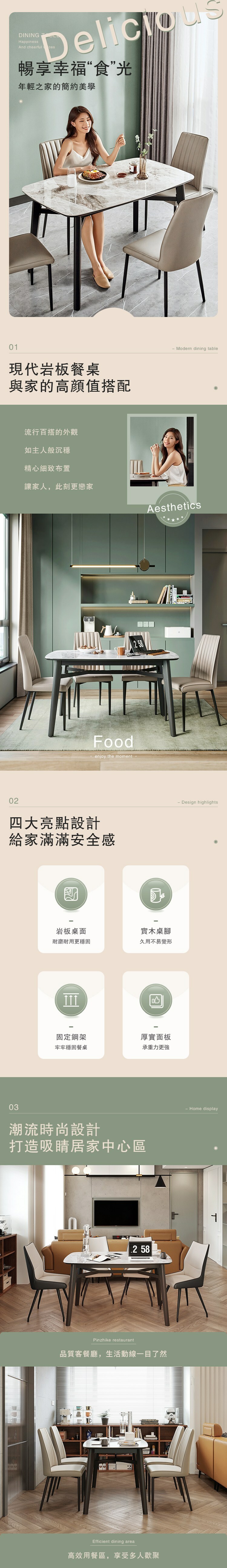 *注意:以下為情境示意圖,實際商品款式為現代簡約岩板1.35M餐桌 LS999-灰白+黑色
