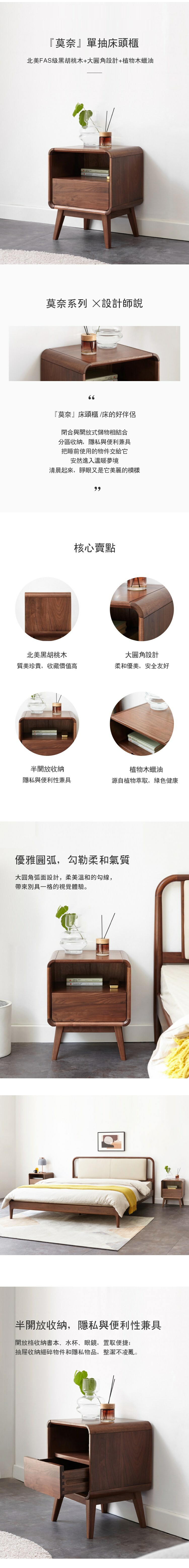 *注意:以下為情境示意圖,實際商品款式為莫內黑胡桃木單抽床頭櫃 K35A01