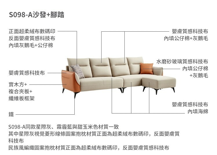 *注意:以下為情境示意圖,實際商品款式為簡約時尚科技布三人布沙發+腳踏 S098-甜玉米色