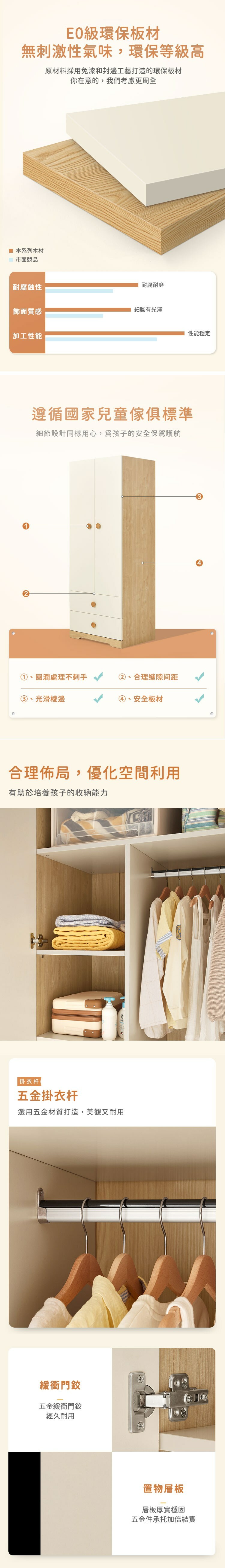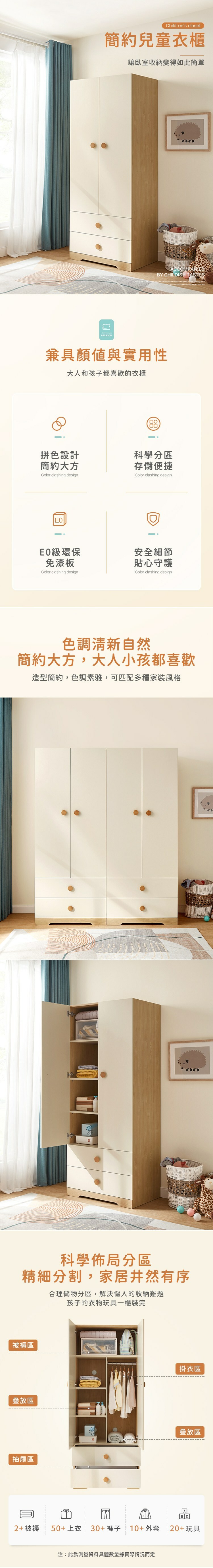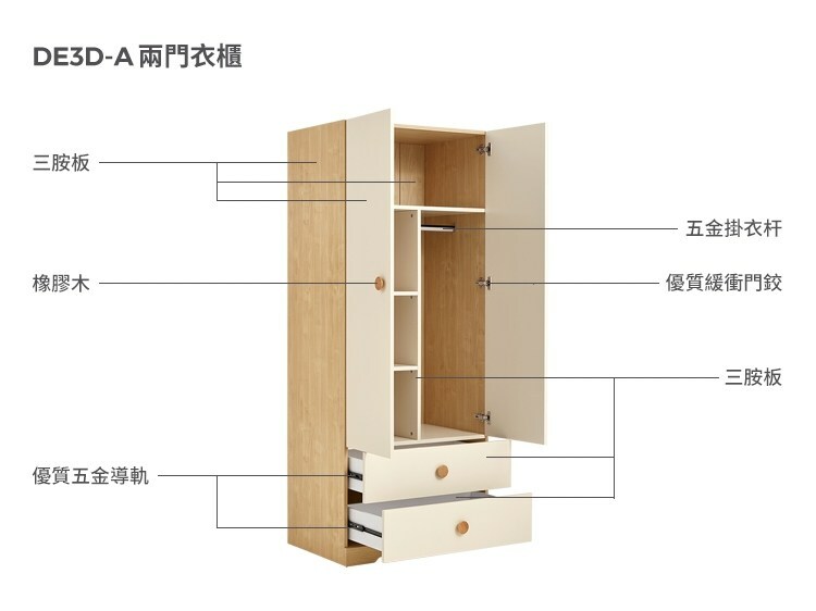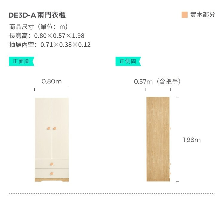 *注意:以下為情境示意圖,實際商品款式為簡約原木色雙門對開雙抽兒童衣櫃 DE3D-原木色+白色
