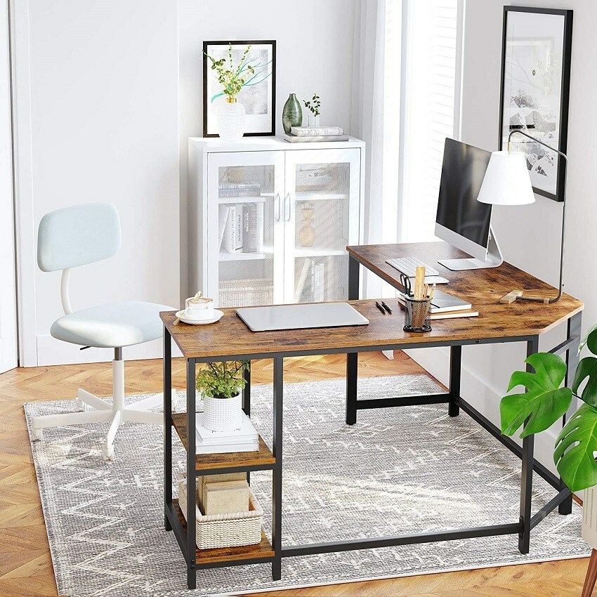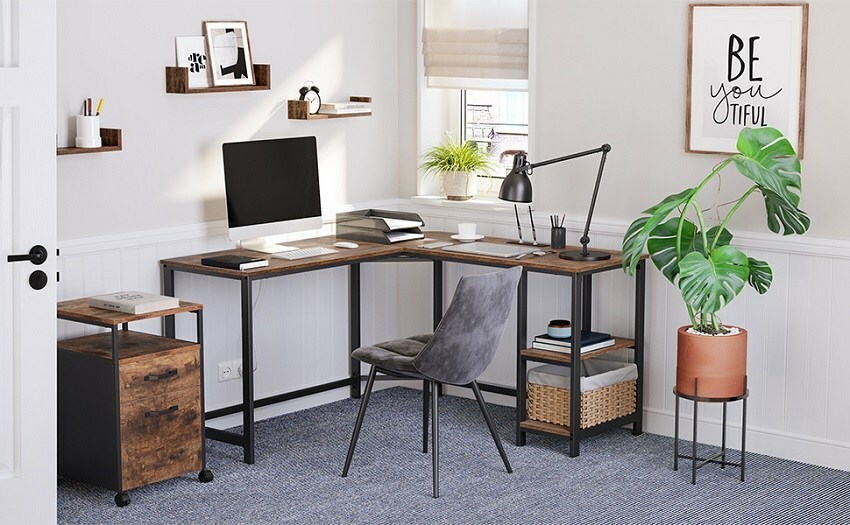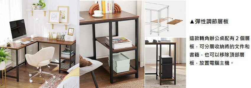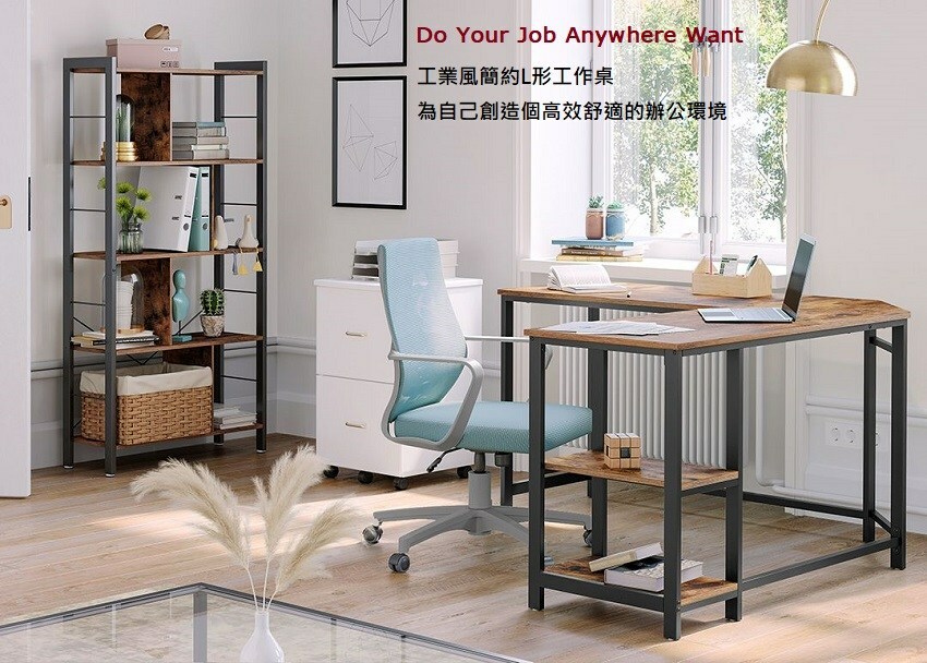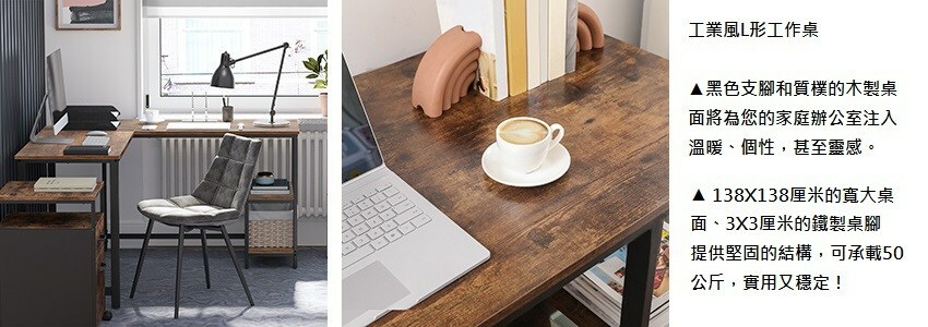 工業風L形工作桌