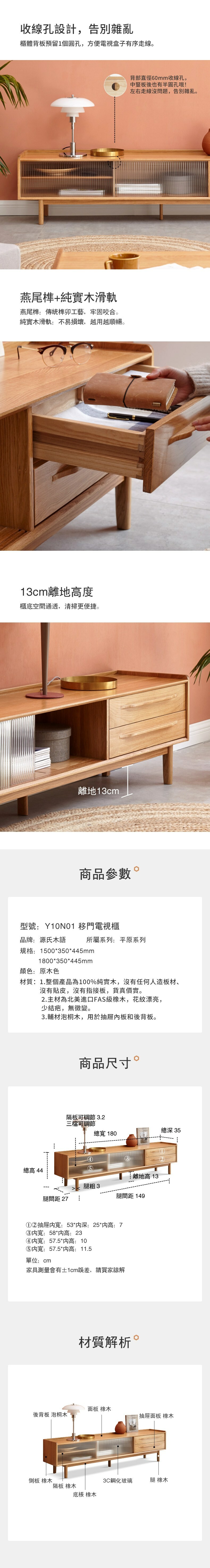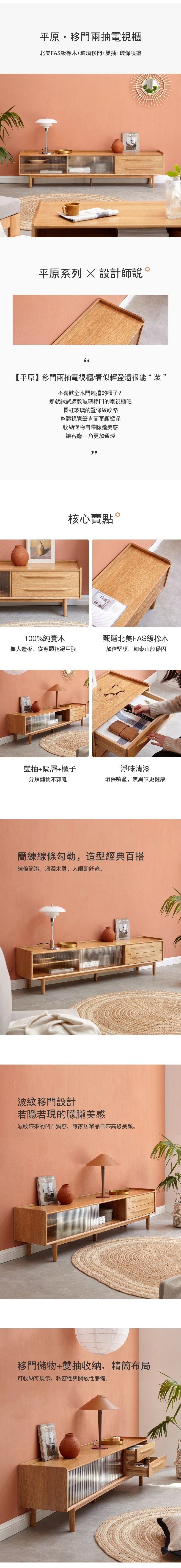 *注意:以下為情境示意圖,實際商品款式為平原橡木1.5M玻璃電視櫃 Y10N01