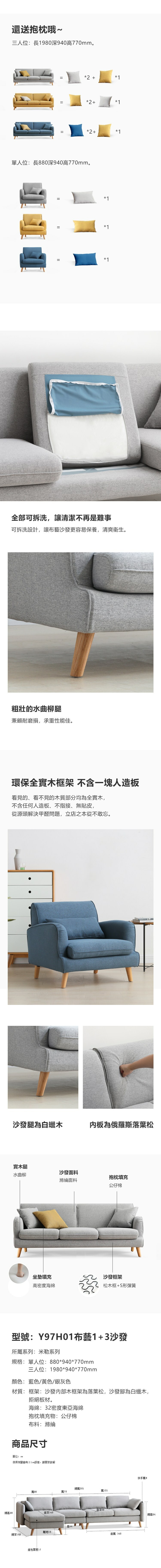 *注意:以下為情境示意圖,實際商品款式為半夏北歐小戶型三人布沙發 Y97H01-湖藍色