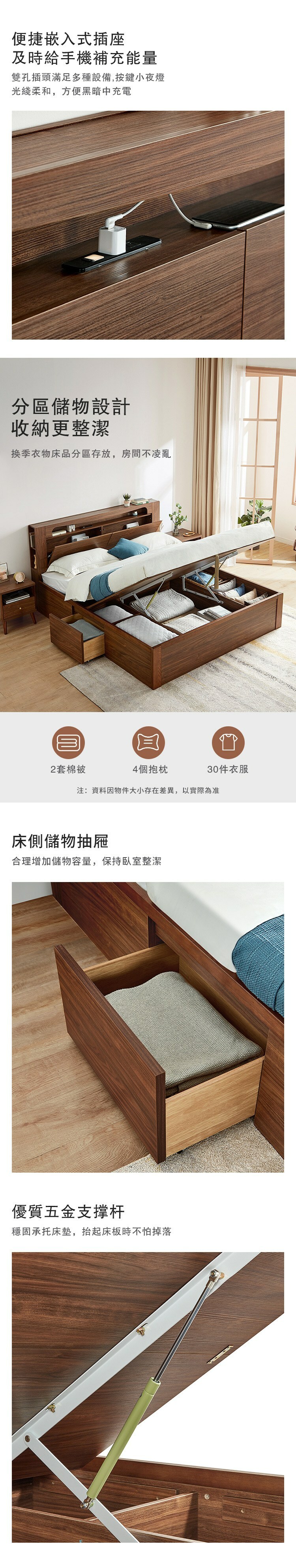 *注意:以下為情境示意圖,實際商品款式為北歐多功能床頭儲物雙人5尺 150x200 掀床架 JU2A-胡桃色,適用床墊尺寸 : 寬 150 X 長 200 CM