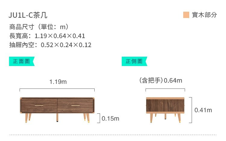 *注意:以下為情境示意圖,實際商品款式為北歐金屬裝飾雙面雙抽茶几 JU1L-胡桃色