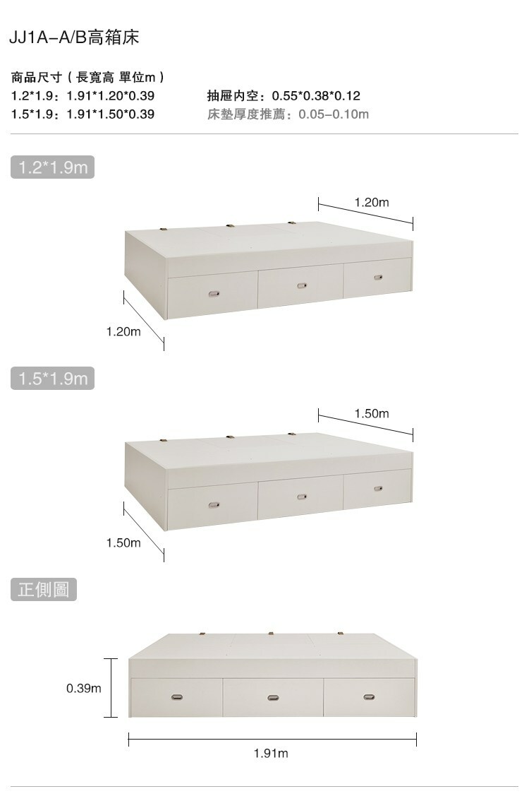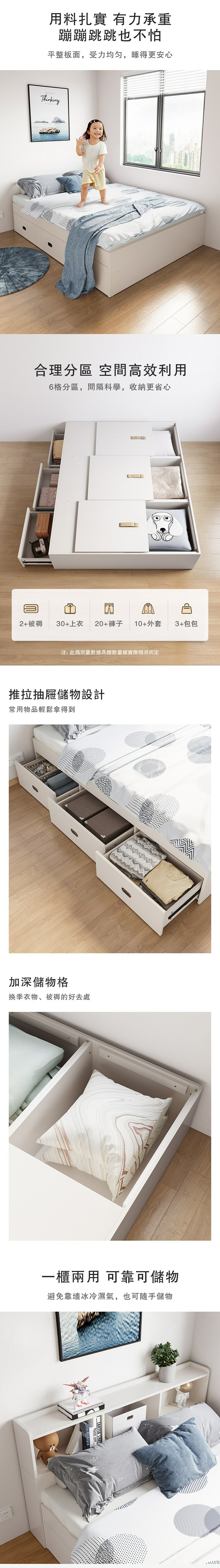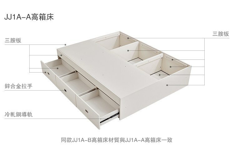 *注意:以下為情境示意圖,實際商品款式為塌塌米雙人收納床架 JJ1A (附儲物櫃)-白色,適用床墊尺寸 : 寬 150 X 長 190 CM