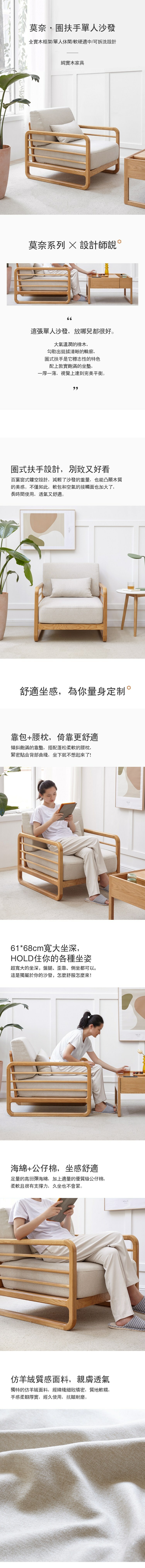 *注意:以下為情境示意圖,實際商品款式為莫奈橡木原木色三人沙發 Y24H02-燈草灰
