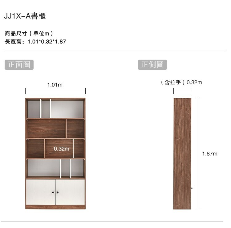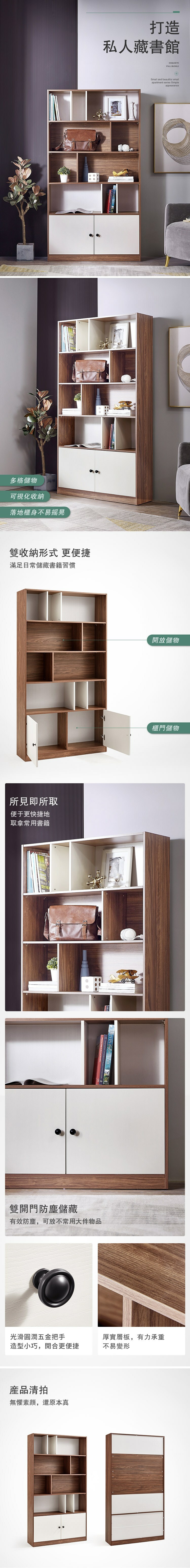 *注意:以下為情境示意圖,實際商品款式為現代簡約撞色雙抽書櫃 JJ1X-胡桃色