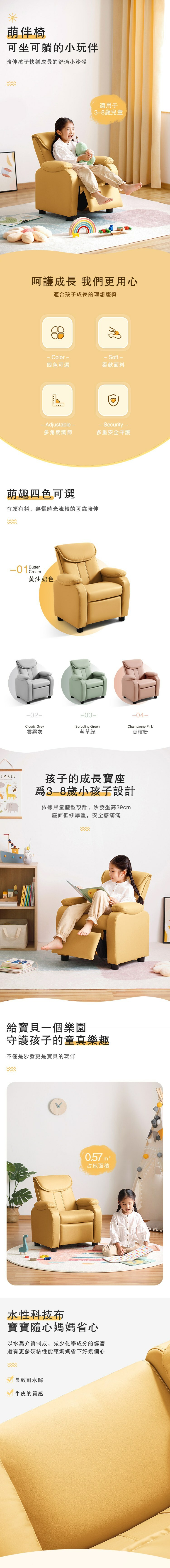 *注意:以下為情境示意圖,實際商品款式為簡約兒童單人沙發LS355-奶油黃