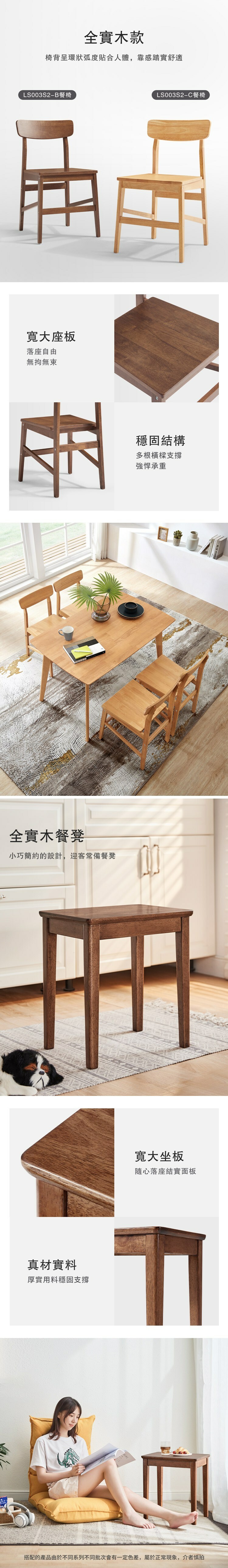 *注意:以下為情境示意圖,實際商品款式為現代簡約實木原木色布座墊餐椅 LS003S3-C-兩入