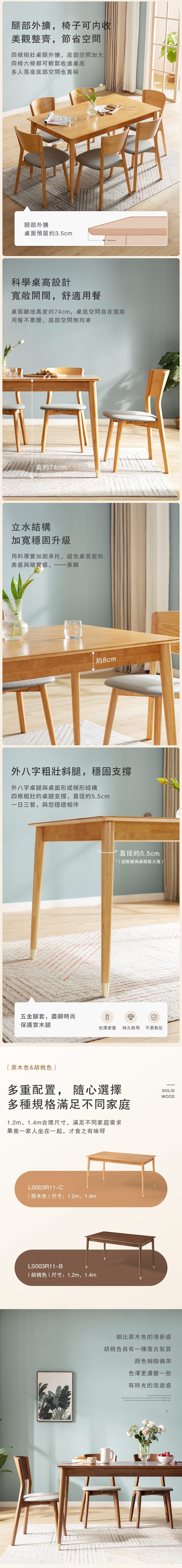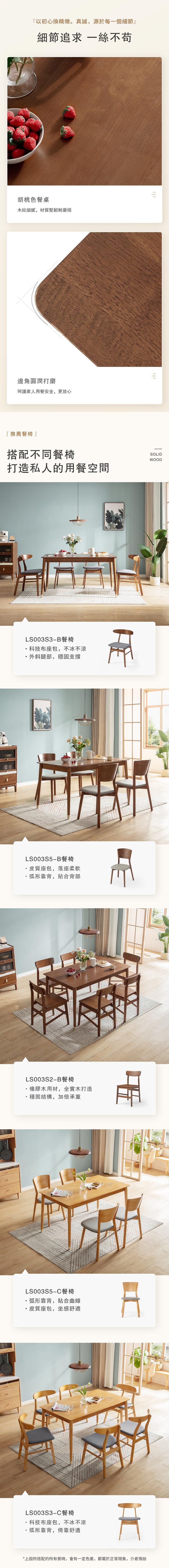 *注意:以下為情境示意圖,實際商品款式為現代簡約實木斜腳1.2M餐桌 LS003-原木色+3S3-C餐椅(一桌四椅)