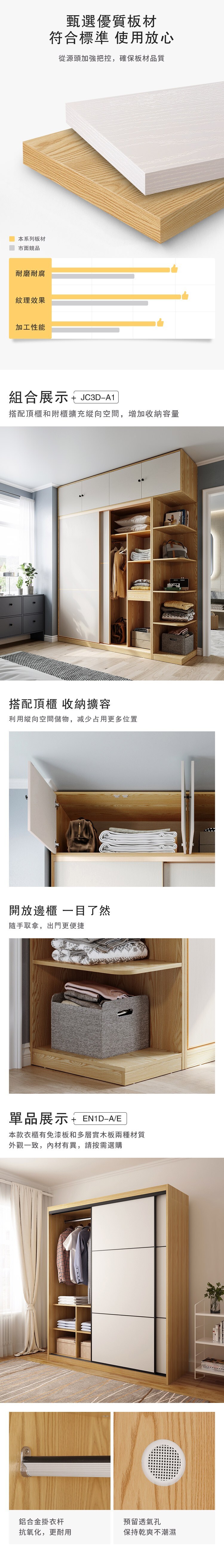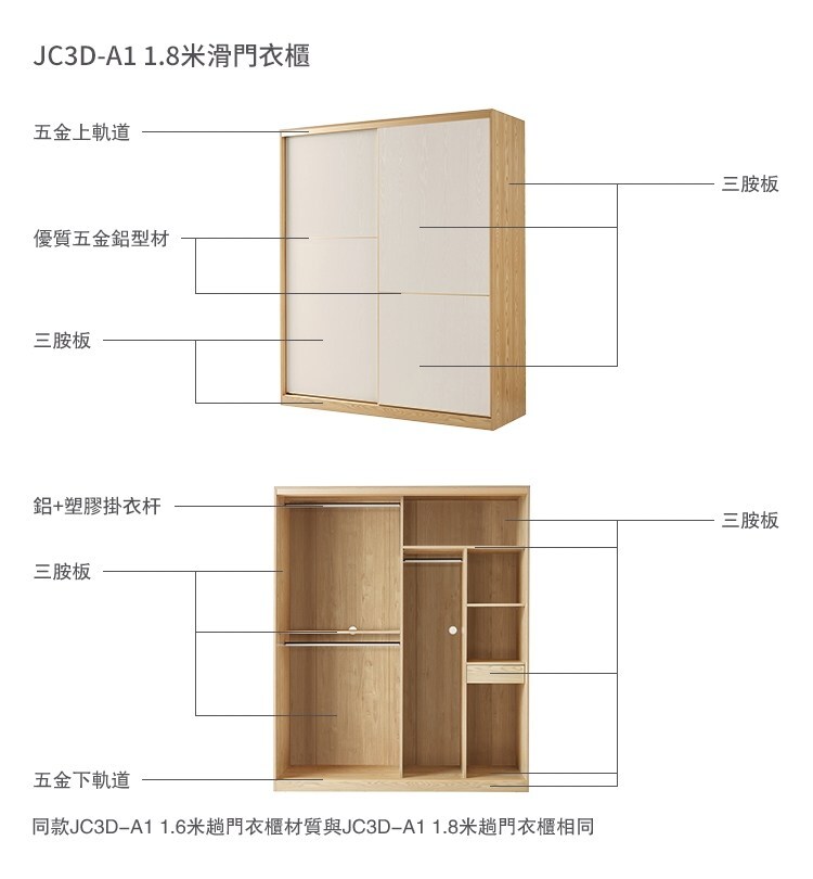 *注意:以下為情境示意圖,實際商品款式為現代簡約滑門1.8M衣櫃組合 JC3D-A+JC5D頂櫃+JC6D邊櫃