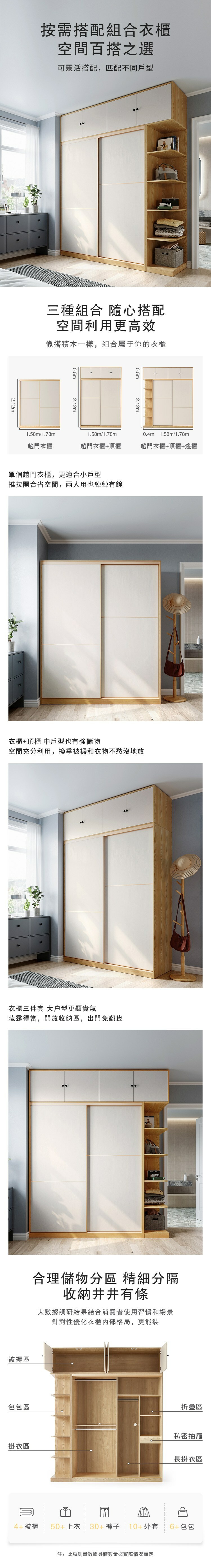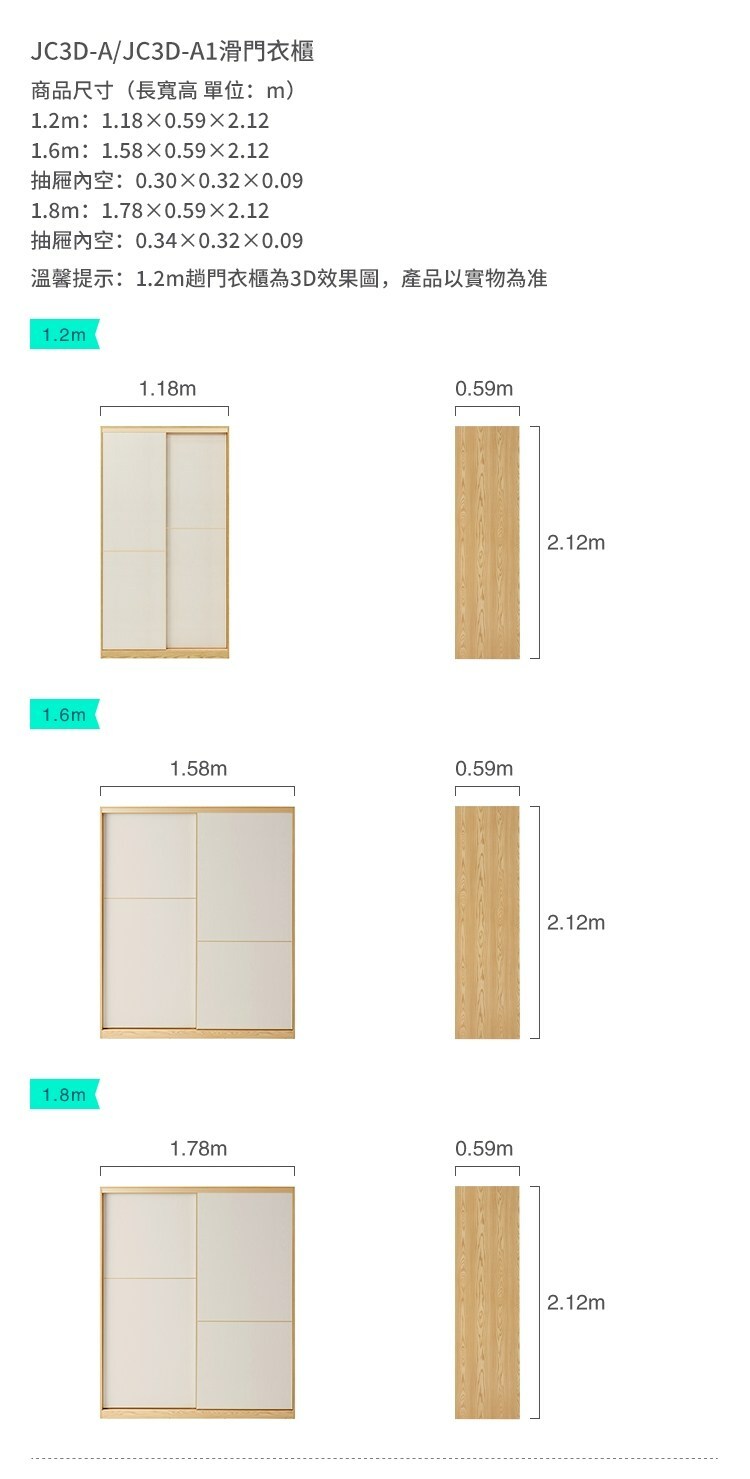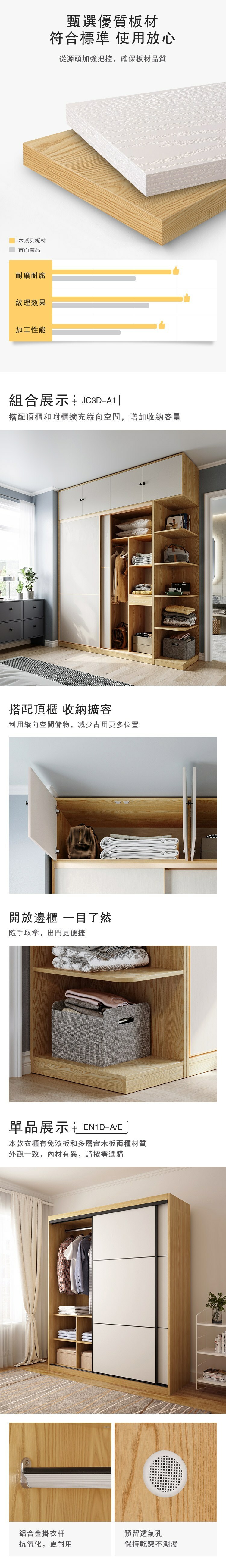 *注意:以下為情境示意圖,實際商品款式為現代簡約滑門1.8M衣櫃組合 JC3D-A+JC6D邊櫃