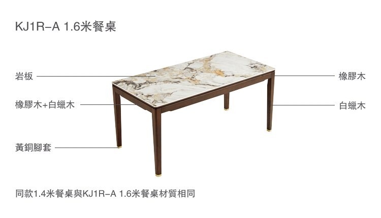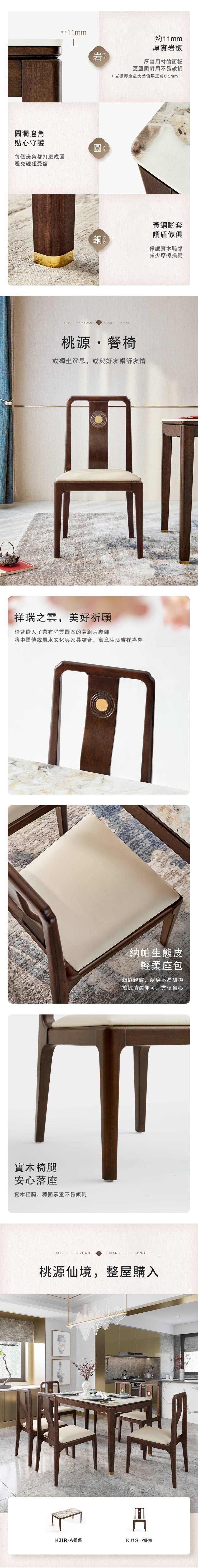 *注意:以下為情境示意圖,實際商品款式為新中式實木岩板1.4M餐桌 KJ1R+餐椅 KJ1S(一桌四椅)