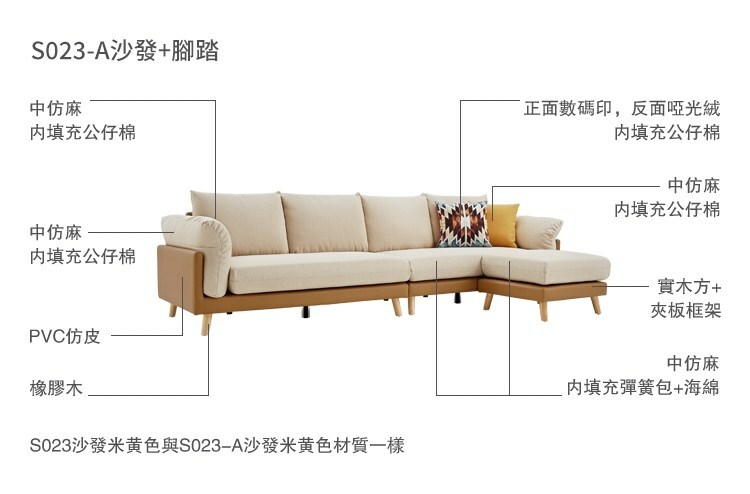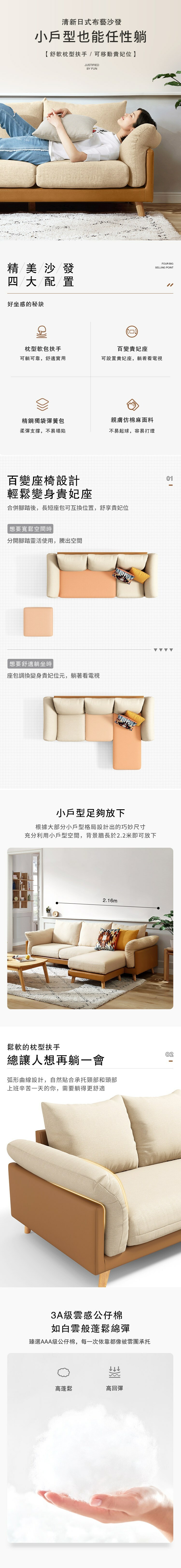 *注意:以下為情境示意圖,實際商品款式為北歐雙色四人布沙發 S023-米黃色