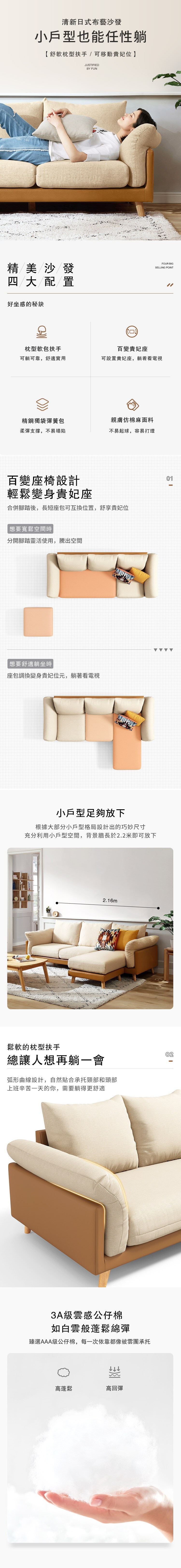 *注意:以下為情境示意圖,實際商品款式為北歐雙色四人布沙發+腳踏 S023-米黃色