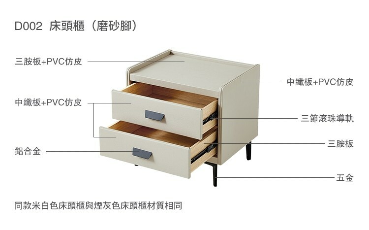 *注意:以下為情境示意圖,實際商品款式為簡約仿皮磨砂腳床頭櫃 D002-煙灰色