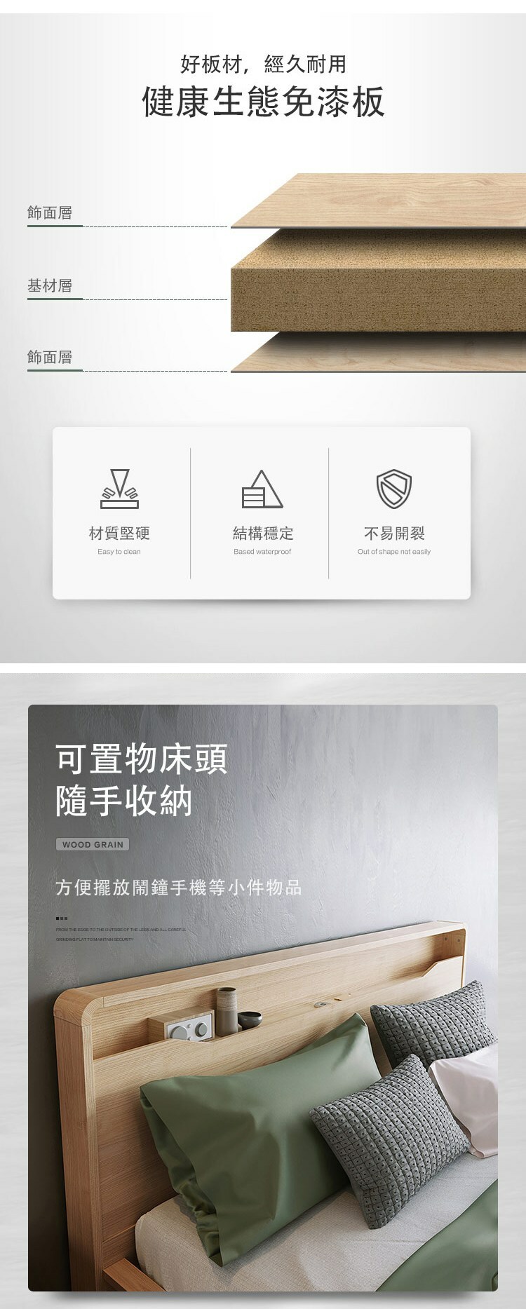 *注意:以下為情境示意圖,實際商品款式為北歐現代簡約床頭置物雙人加大6尺 180x190cm 床架組HS3A-原木色,適用床墊尺寸 : 寬 180 X 長 190 CM