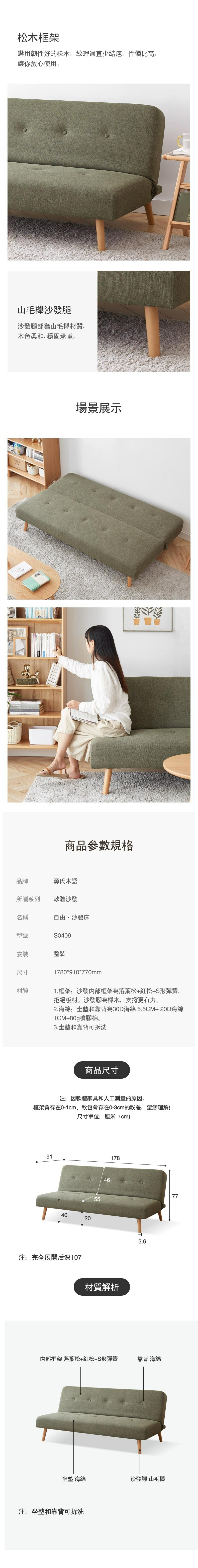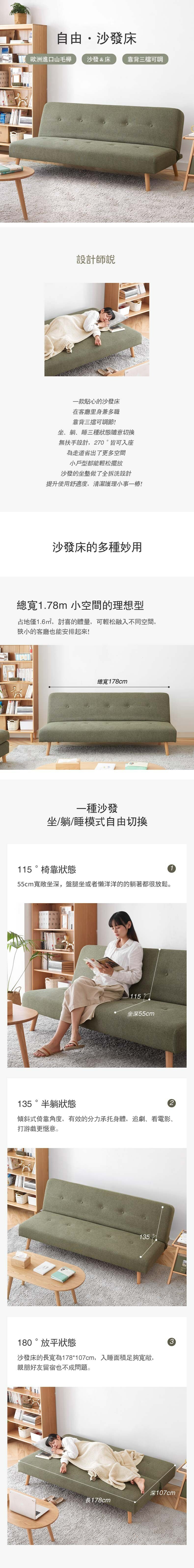 *注意:以下為情境示意圖,實際商品款式為小戶型仿棉麻可拆洗沙發床 S0409-草苔绿