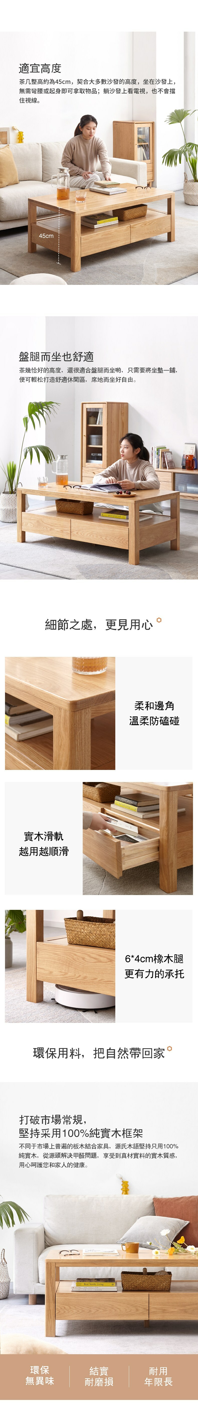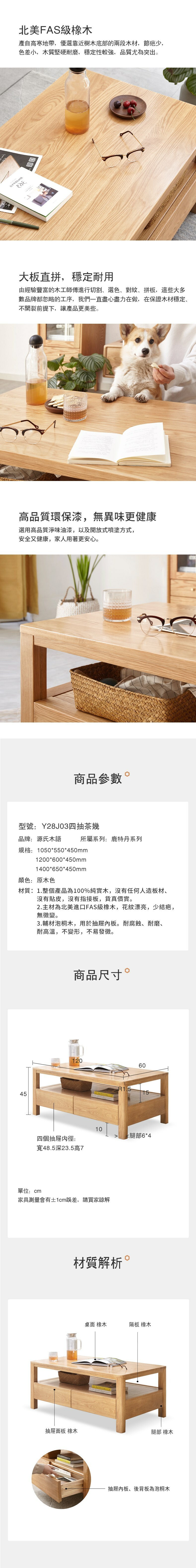 *注意:以下為情境示意圖,實際商品款式為鹿特丹胡桃色橡木1.2M四抽實木茶几 Y28J03