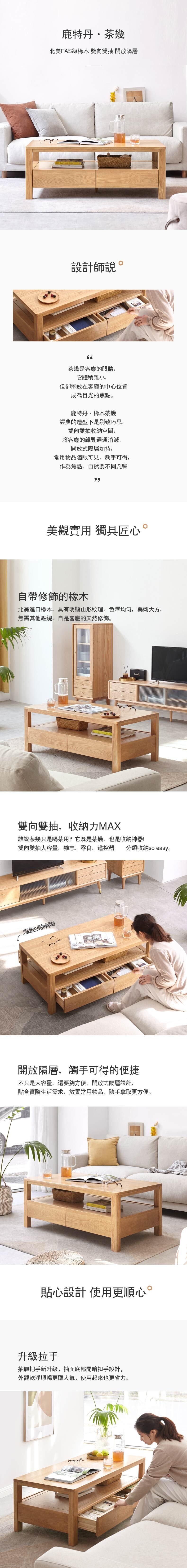 *注意:以下為情境示意圖,實際商品款式為鹿特丹胡桃色橡木1.4M四抽實木茶几 Y28J03