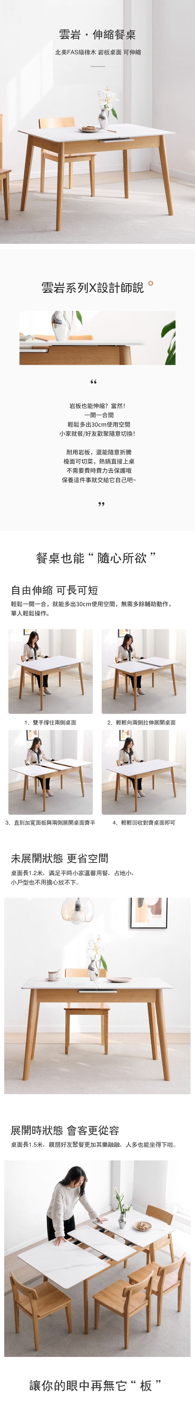 *注意:以下為情境示意圖,實際商品款式為雲岩橡木原木色岩板1.4M伸縮餐桌 Y54R03