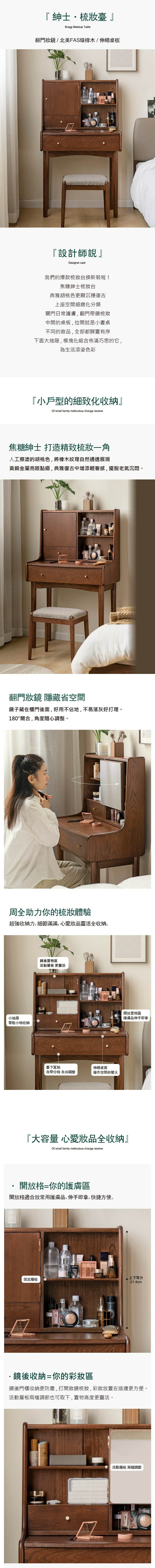 *注意:以下為情境示意圖,實際商品款式為布拉格橡木胡桃色實木儲物0.75M化妝桌 H84D02