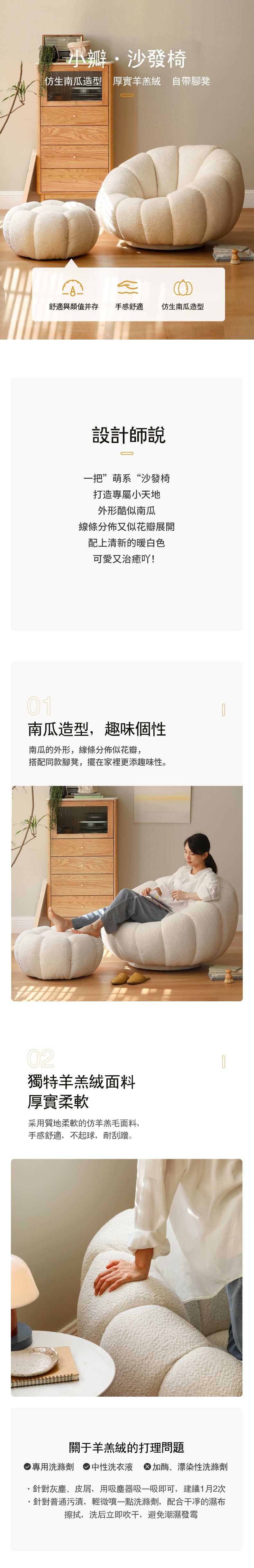 *注意:以下為情境示意圖,實際商品款式為羊羔絨南瓜造型單人沙發椅 S03127-雲棉白
