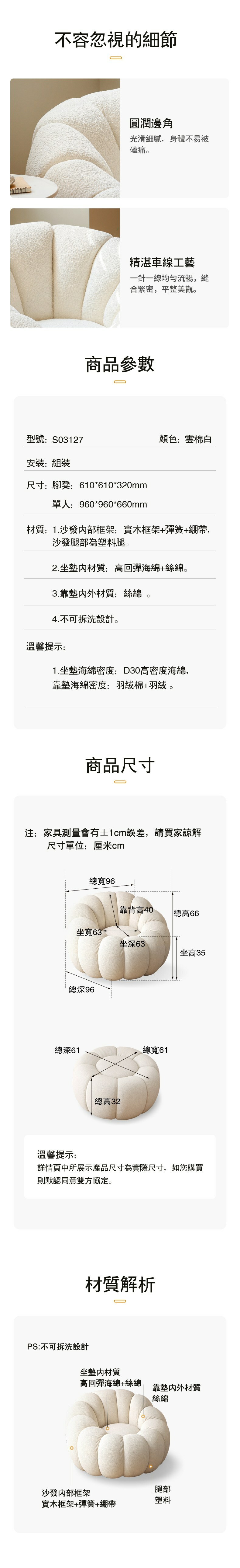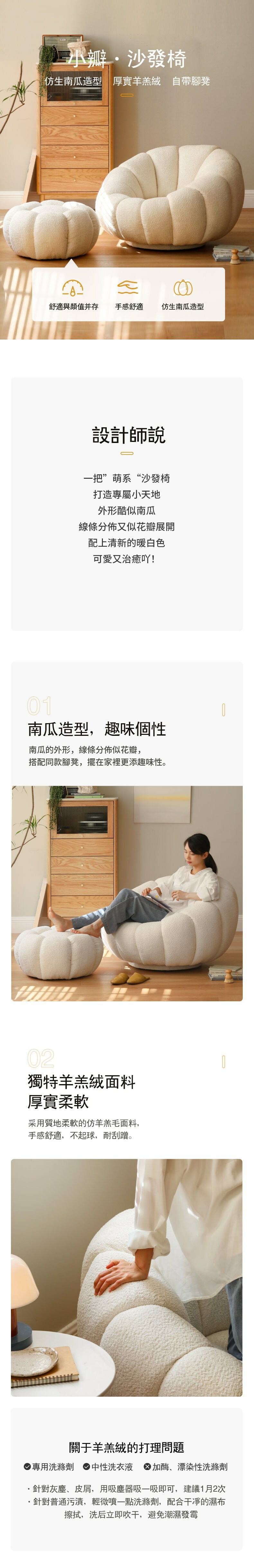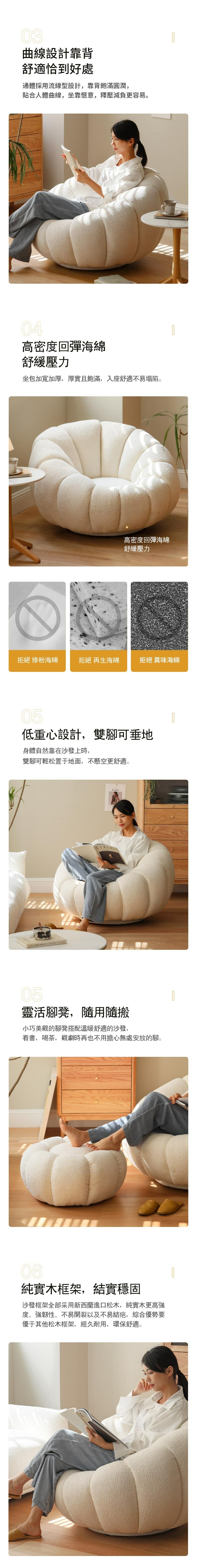 *注意:以下為情境示意圖,實際商品款式為羊羔絨南瓜造型單人沙發椅+腳凳 S03127-雲棉白