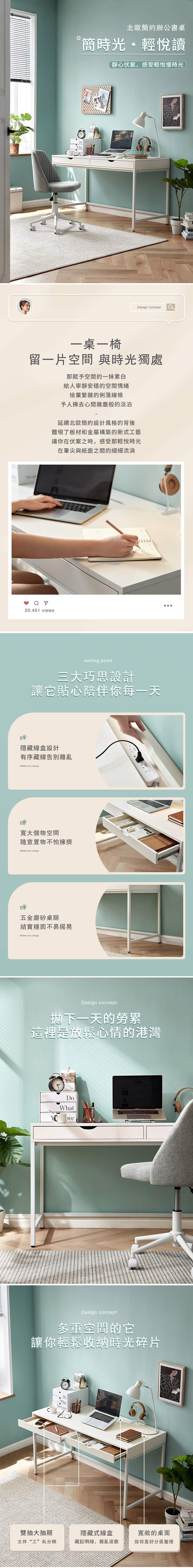 *注意:以下為情境示意圖,實際商品款式為純白鐵腳1.4M電腦桌 BG014-白色