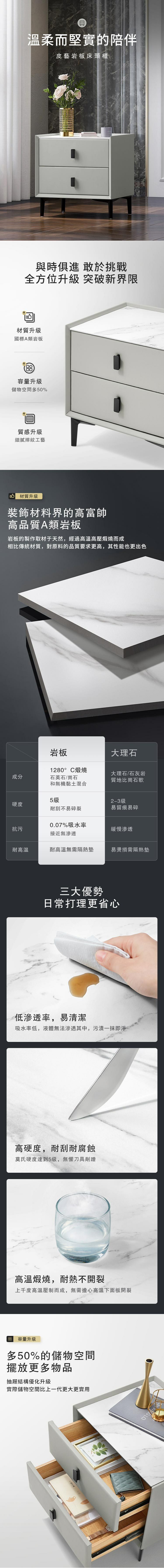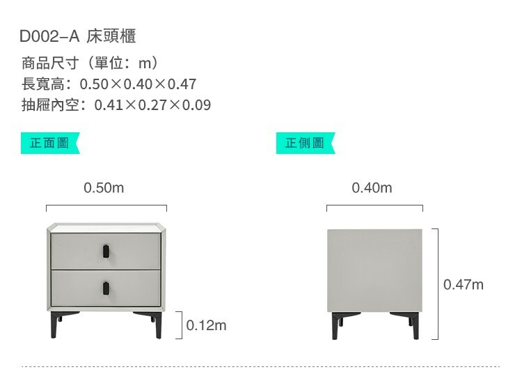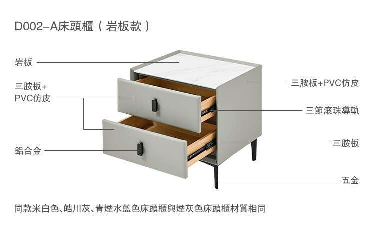 簡約岩板雙抽床頭櫃 D002-煙灰色