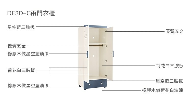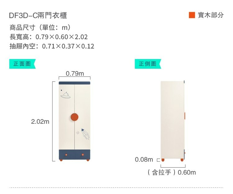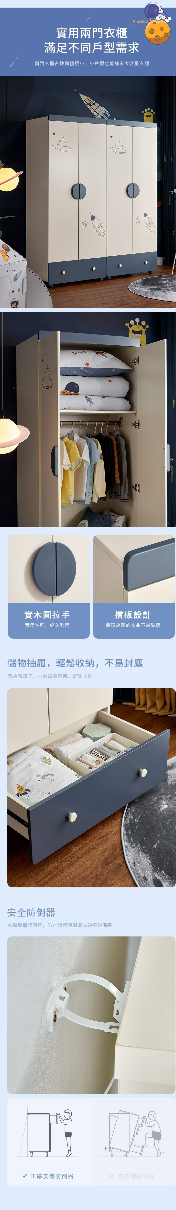 *注意:以下為情境示意圖,實際商品款式為兒童太空系列雙門單抽衣櫃 DF2D
