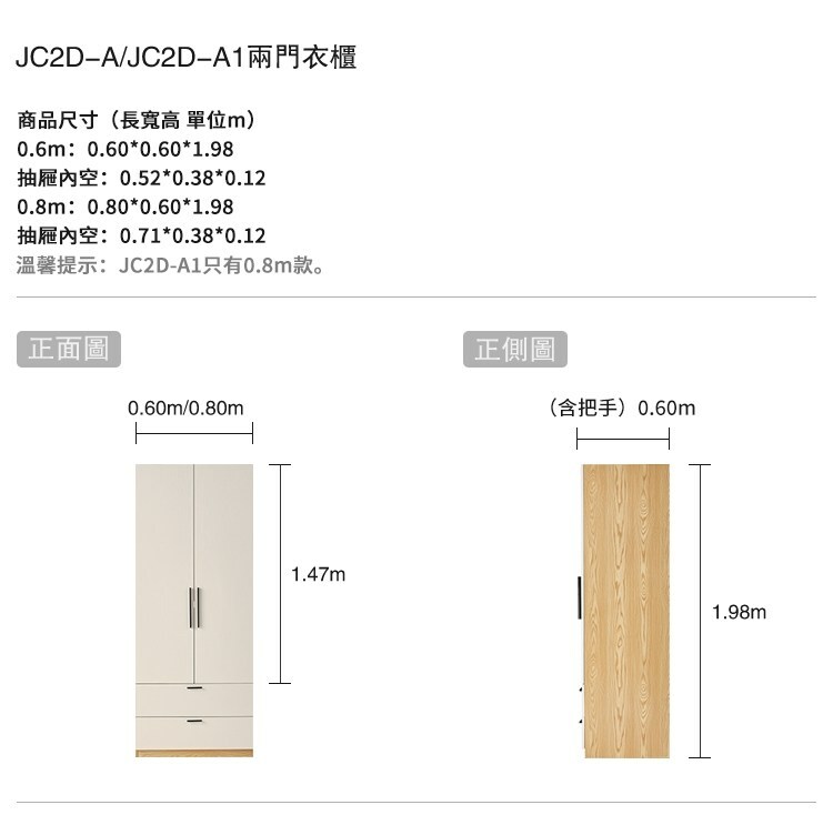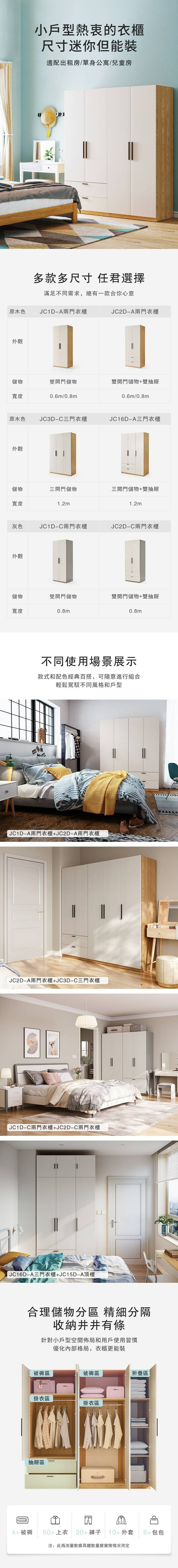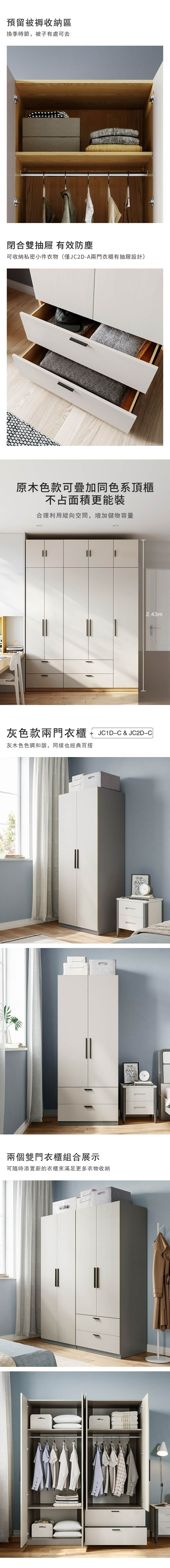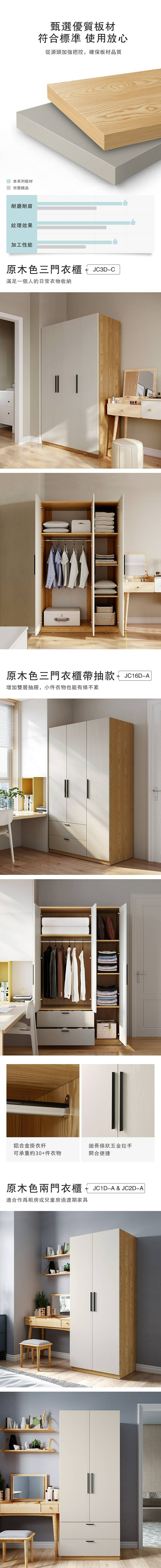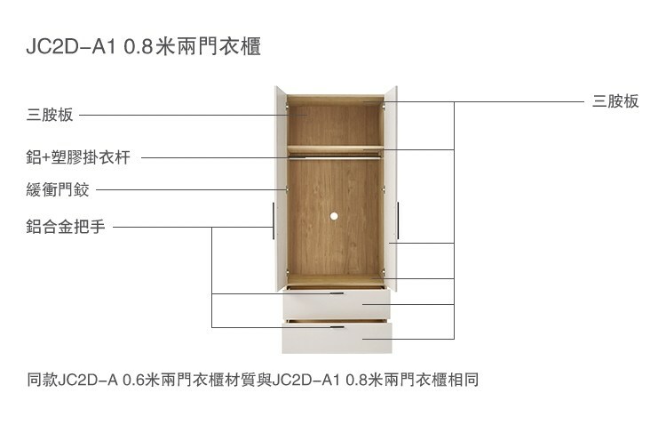 *注意:以下為情境示意圖,實際商品款式為現代簡約0.8M雙門雙抽原木色衣櫃 JC2D-白色 (附頂櫃)