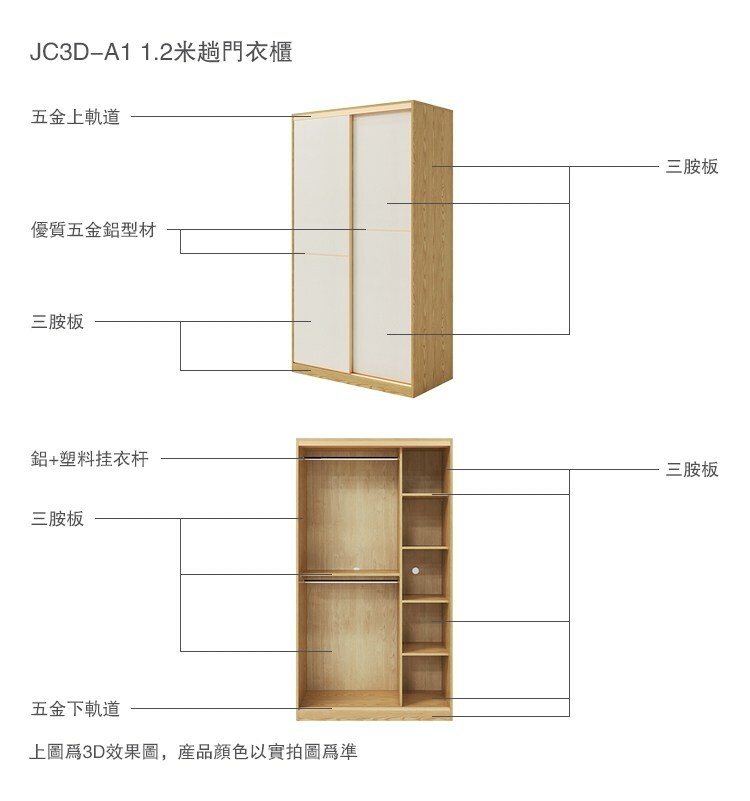 *注意:以下為情境示意圖,實際商品款式為現代簡約金線1.2M滑門衣櫃 JC3D-白色 (附頂櫃)